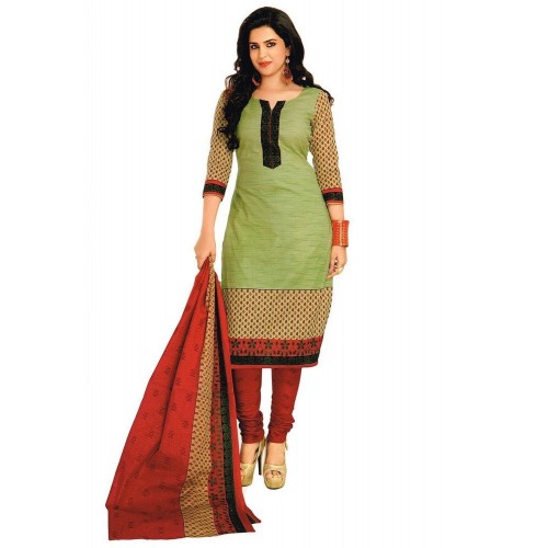 Salwar Studio Women's Cotton Dress Material (OM-0000956_Green/Red)