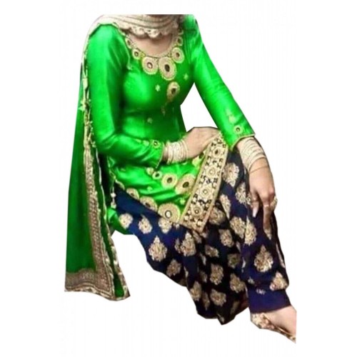 Ninecolours Women's Georgette Patiala Suit Dress Material (SM0820109_Green)