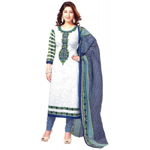 The Fashions Hub Women's Cotton Unstitched Salwar Suit (White)