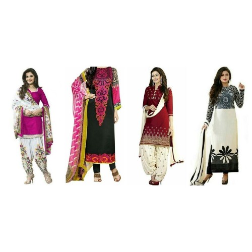 Sky Global Women's Printed Unstitched Regular Wear Salwar Suit Dress Material (Combo pack of 4)(SKY_501_RED)(SKY_523_BLACK & WHITE)(SKY_521_PINK)(SKY_222_MULTICOLOR)