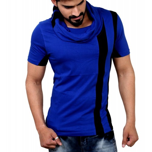 Designer Muffler Neck Royal Blue-Black Men's TShirt/Tee