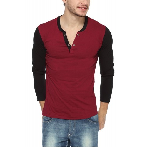 * Style: Henley Vneck Full Sleeve T-shirt - Maroon.* Fabric: 180Gsm, 100% Cotton, Soft Flow, Bio Wash.