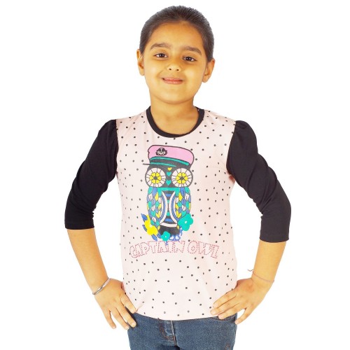Naughty Ninos OWL printed and embellished Tshirt in Baby Pink and Black combo